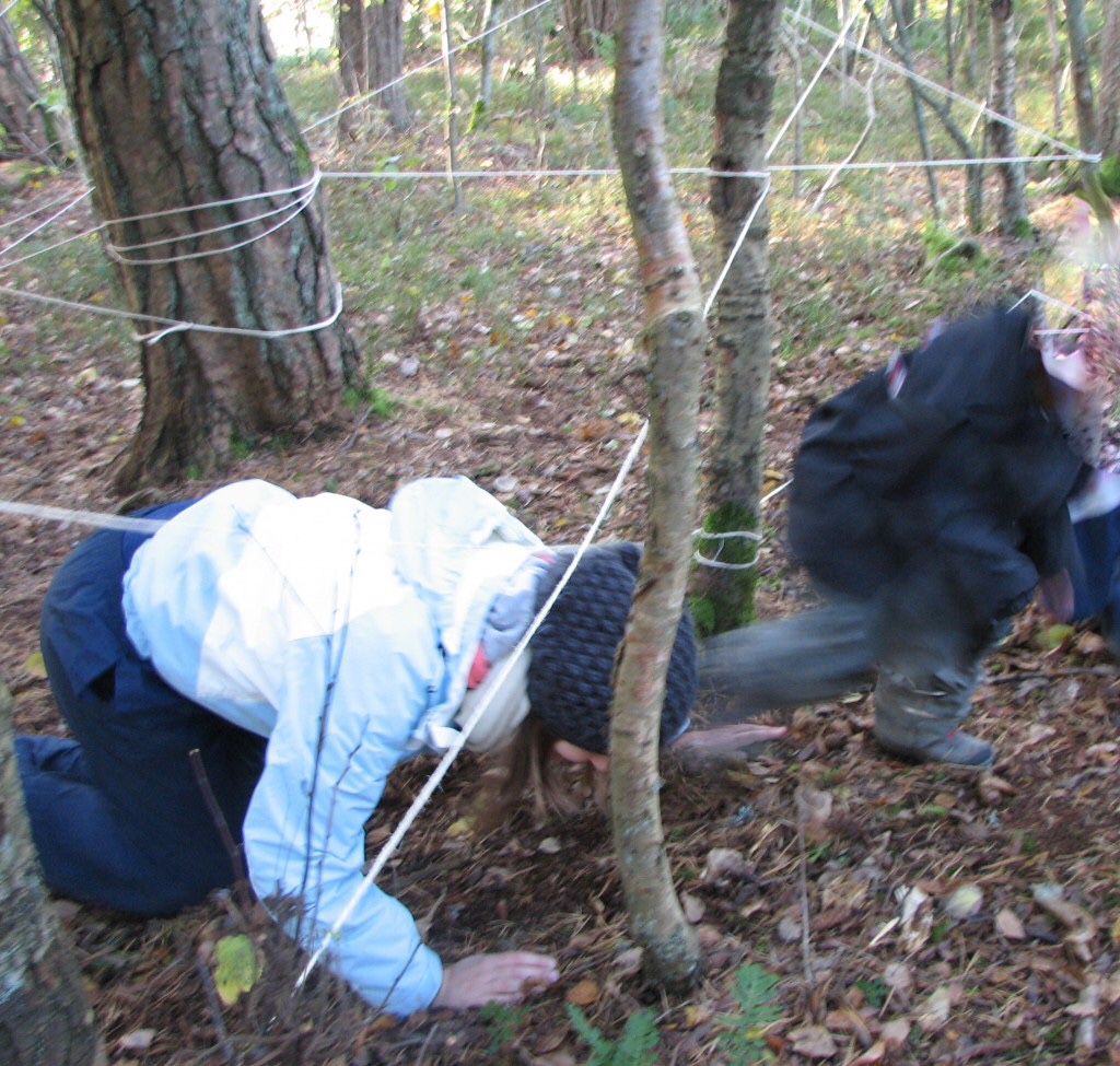 Hvordan: Velg deg et område med mange trær, slik at det er mulig å bygge et fint tornekratt. Trærne kan ha varierende avstand fra hverandre, ulike størrelser og høyder. La tauet gå på kryss og tvers slik at det danner et spennende tornekratt!
