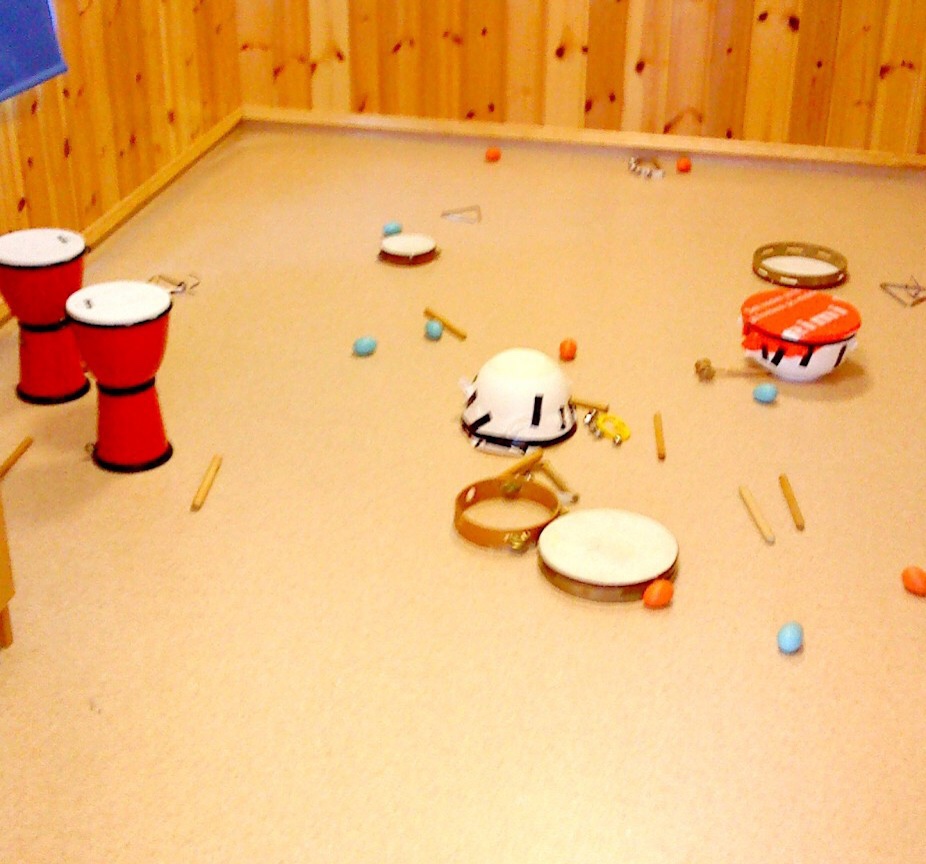 Hvordan: Legg ut instrumenter i et rom hvor barna (dette var en småbarnsavdeling) kan utforske de fritt. Instrumentene la vi i en sirkel på gulvet med en tromme i midten. Dette som et symbol på fellesskapet og får å se om barna var opptatt av å legge instrumentene tilbake på samme plass.
