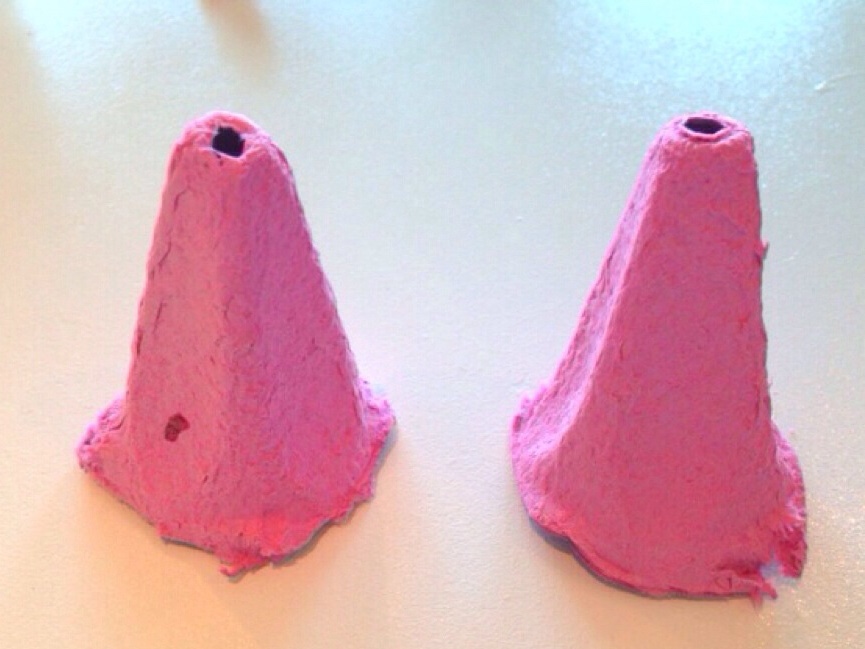 Hvordan: Start med å klippe ut tappene som stikker opp mellom eggene. Mal de så i ønsket farge/farger.